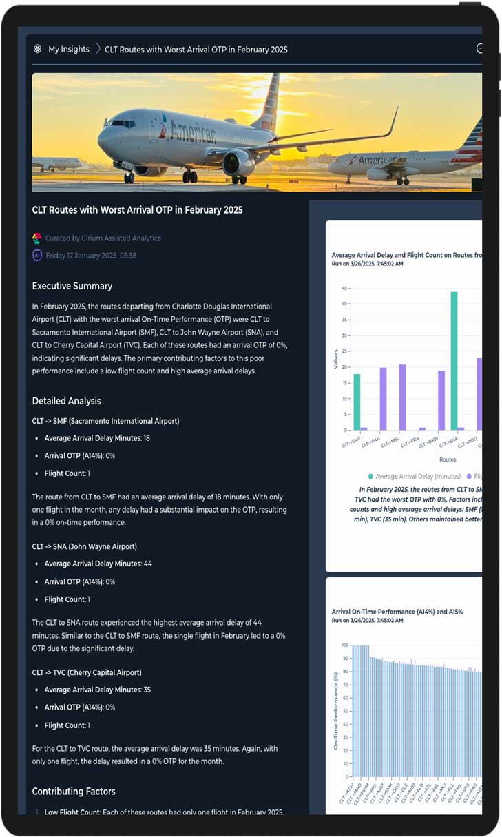 Explore the fastest way to stay ahead of delays and keep operations flying smoothly. Advance your on-time performance (OTP) analysis with the aviation industry’s first AI-powered assistant.