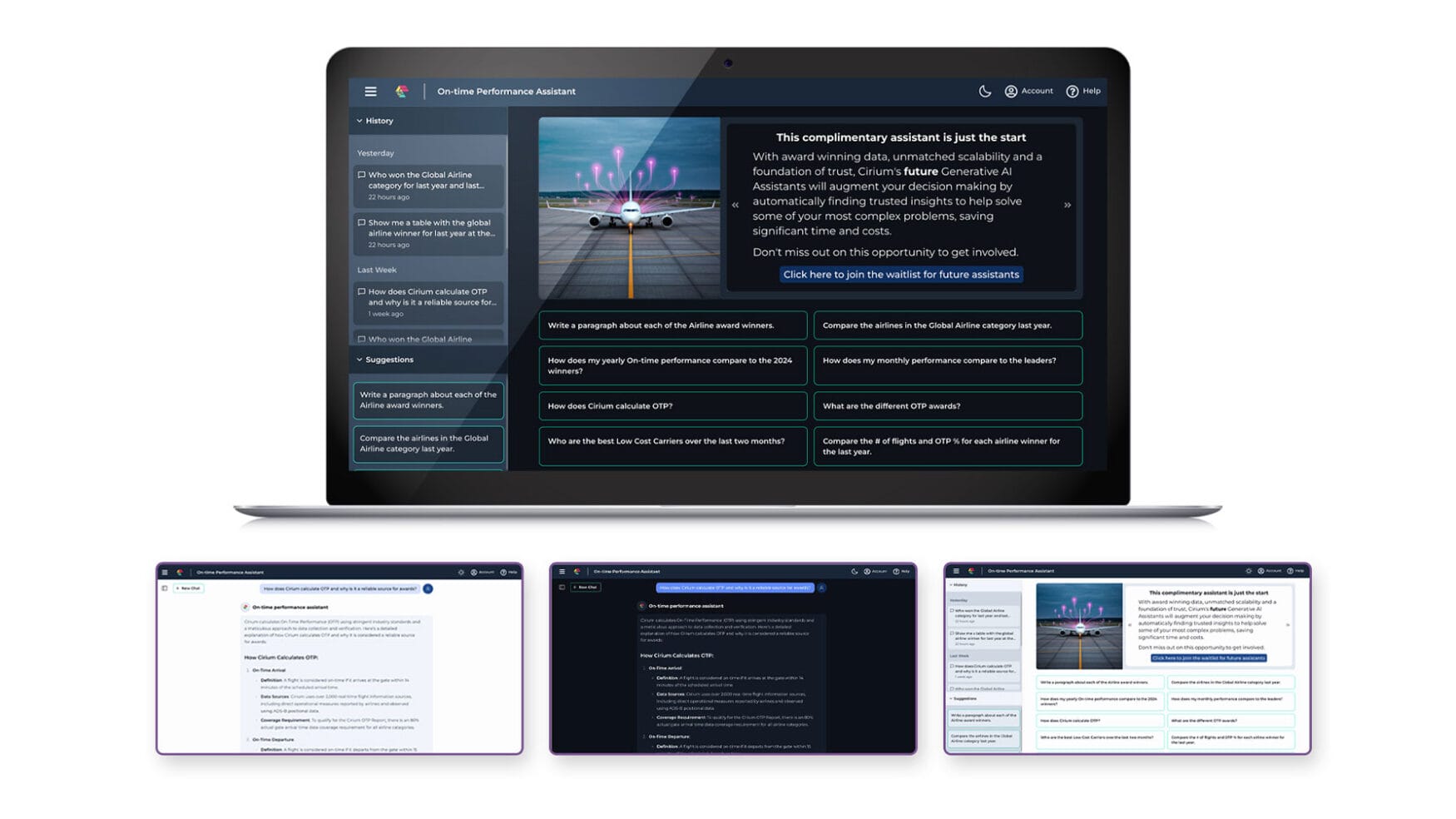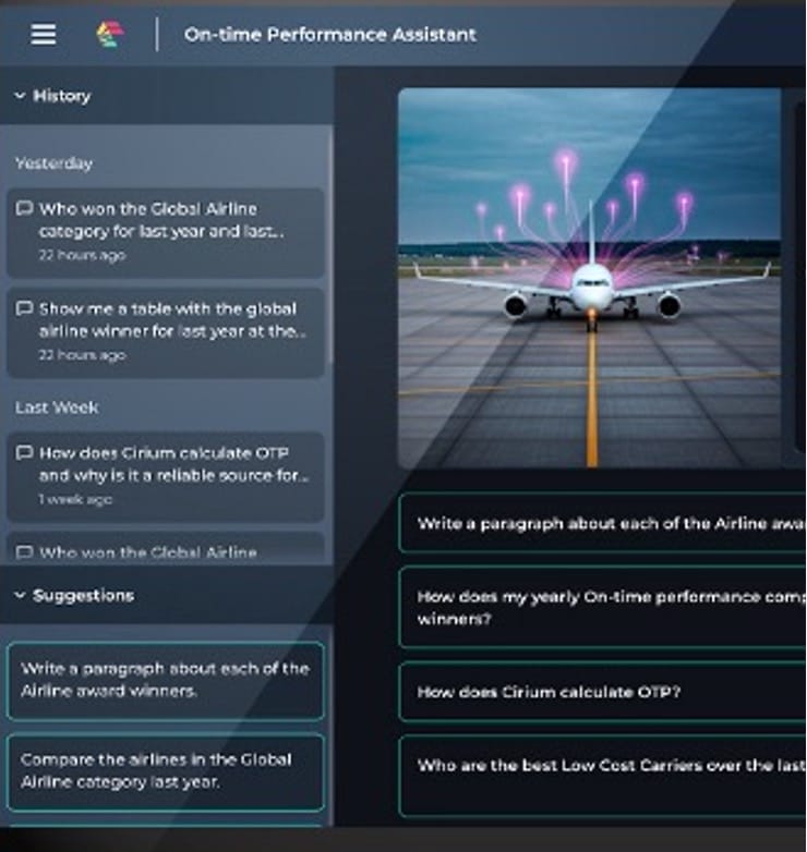 Ask questions about Cirium’s annual and monthly on-time performance results and get competitive insights at speed with a complimentary AI assistant.