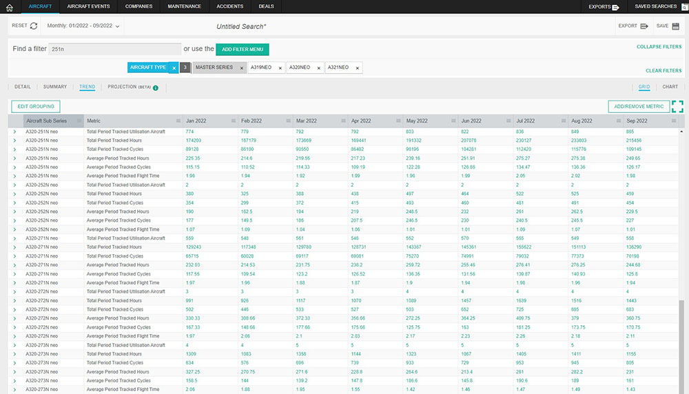 Assess flight frequency, routes, durations and more of flights in service and monitor parked or stored aircraft data. Uncover the advanced flight tracking data capabilities of Cirium.