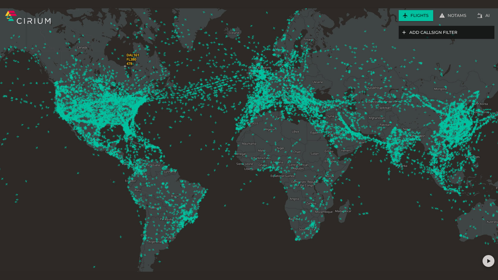 - Flight tracking & ground accumulation: Assess flight frequency, routes, durations and ground time with real-time and historical data. Monitor whether aircraft are in service, parked or stored to track accumulation risks. Use Cirium’s worldwide satellite flight tracking data to prevent portfolio losses from major events.