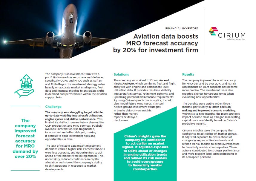 Aviation data boosts MRO forecast accuracy by 20% for investment firm