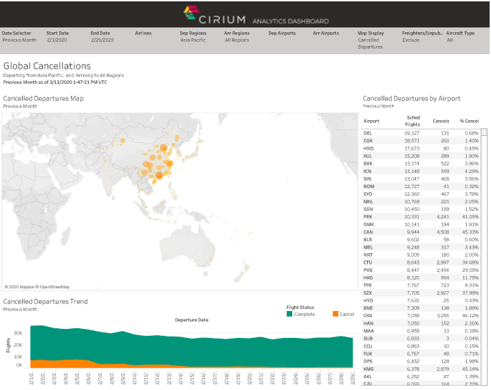 Cirium Insightsは、お客様のニーズに合わせてCirium BluTMで構築されたTableauワークブックです。このワークブックは、トレンドを把握し、市場の変化を説明し、設備や財務、計画といった航空事業の重要エリアにおいて新たな視点を見出すことができるように設計されており、さまざまなビジネスニーズに沿った分析データを提供します。