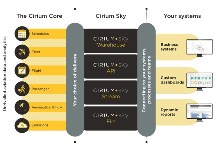 Aspects of Cirium Sky: Flight, Passenger, Emissions, Aircraft, and more.