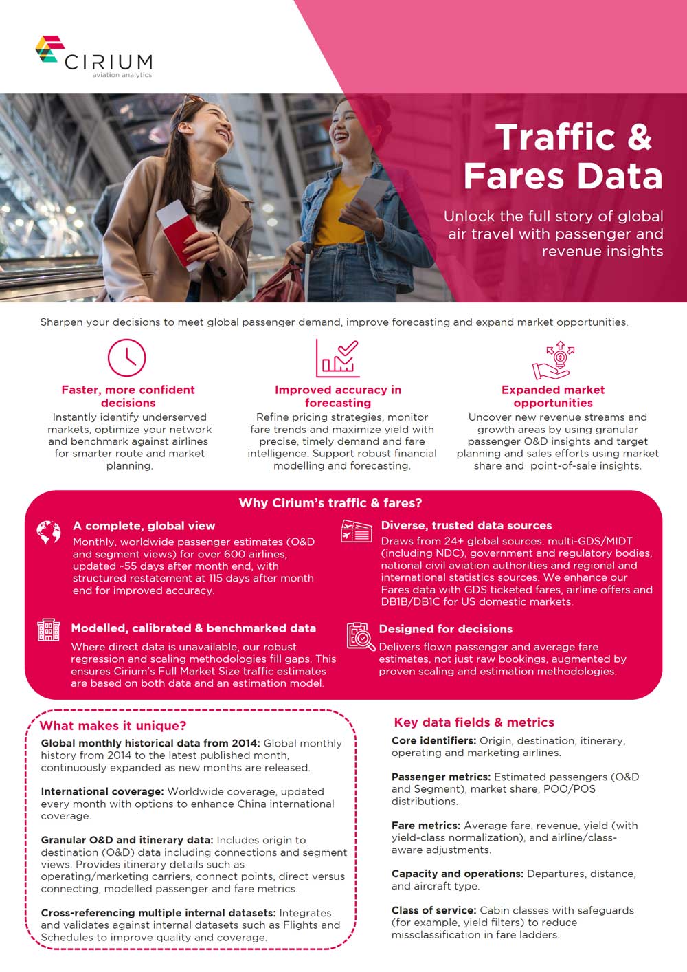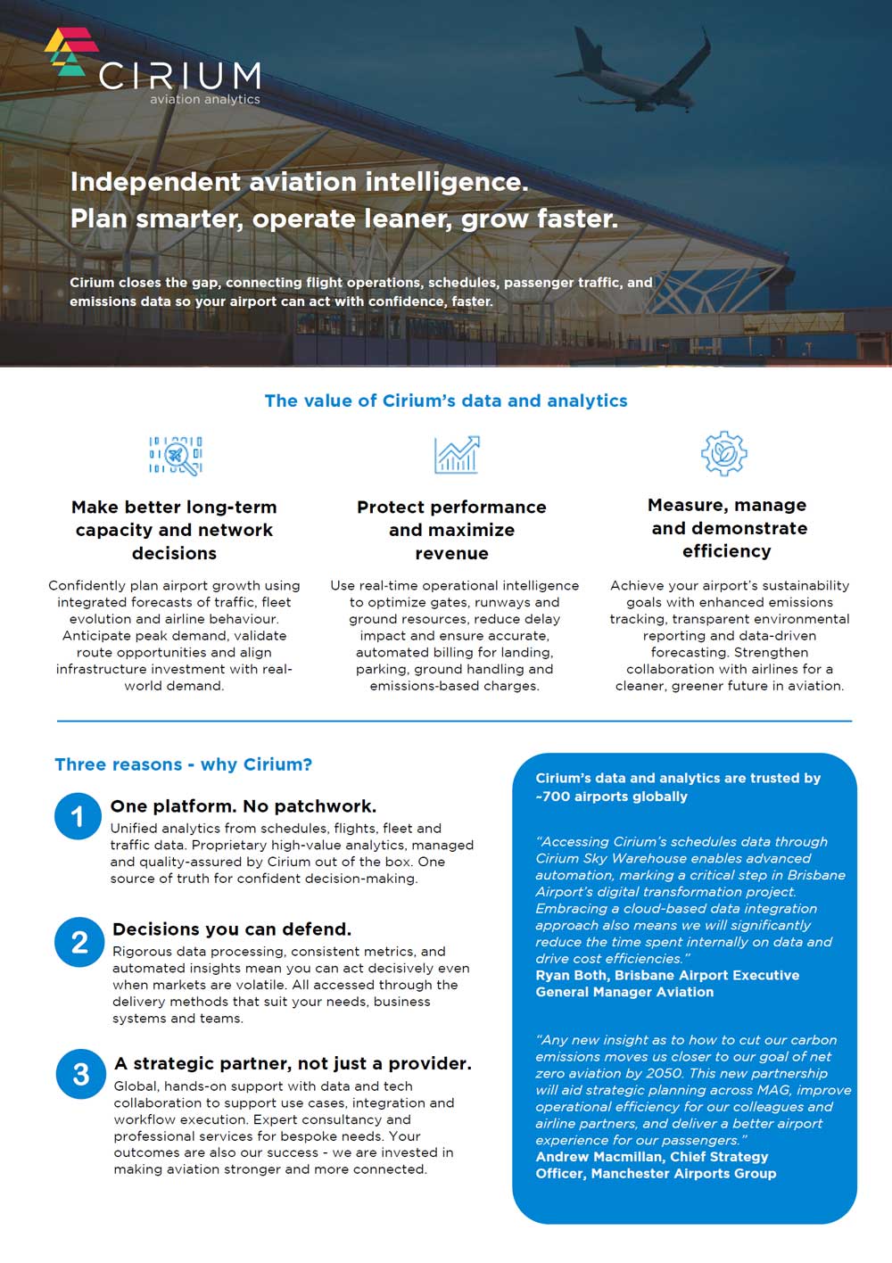 Cirium equips airlines and airports with unified data on schedules, traffic, fares, and operations, empowering confident and agile network planning. Our platform delivers real-time demand insights, passenger segmentation, and connectivity modelling, transforming complex market data into clear, actionable strategies. As a strategic partner, Cirium helps teams swiftly identify opportunities, assess connectivity, and optimize routes for growth in a dynamic market.