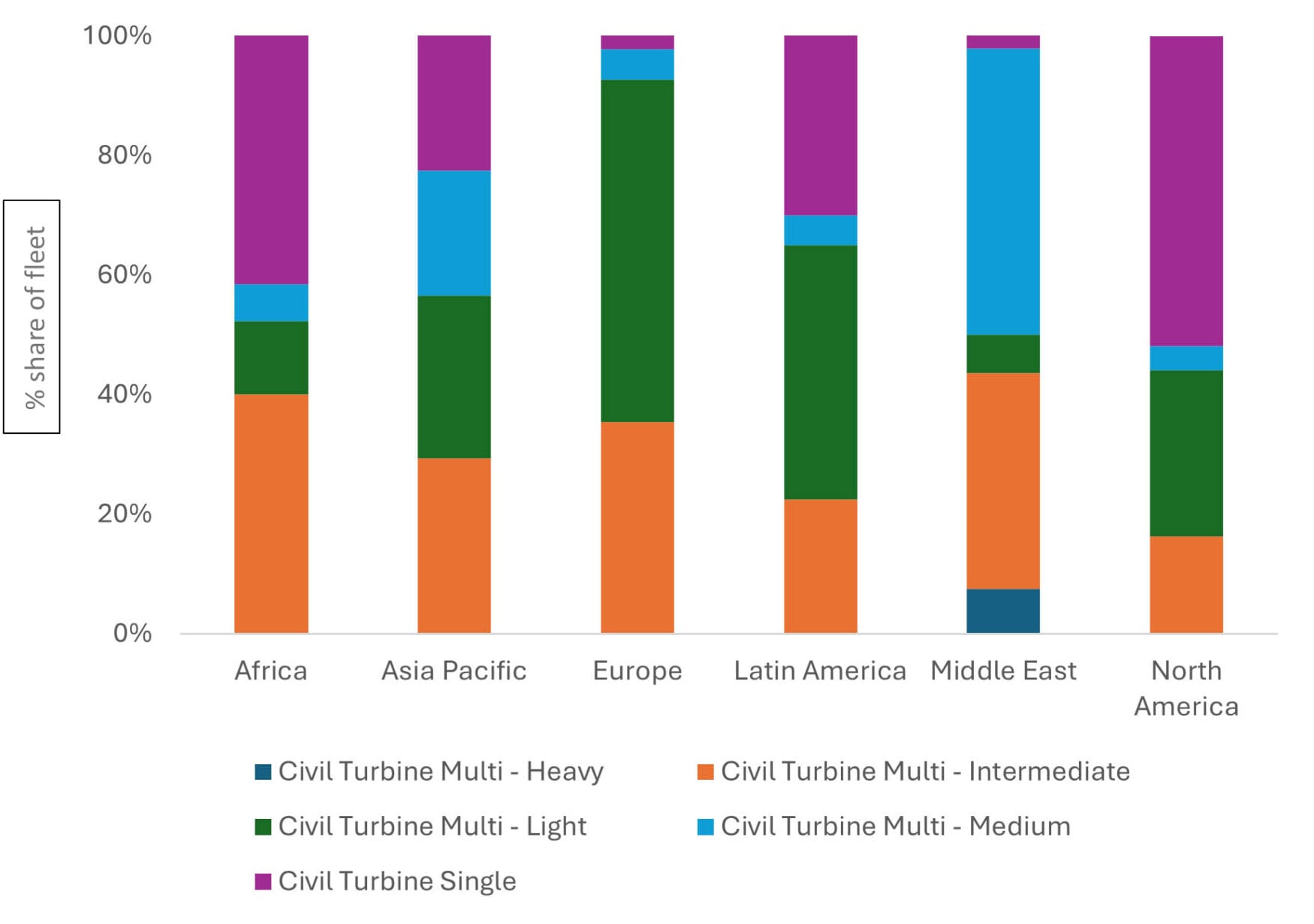 Approximately 30% of the existing fleet—largely concentrated in Europe and North America—will require replacement, underscoring the importance of lifecycle planning and cost efficiency. Cirium are expecting new deliveries to focus on twin engine types rather than single engine. New types like the H140 and the R88 are likely to stimulate demand.