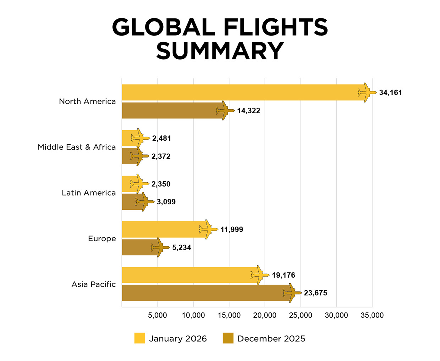 The global aviation landscape was defined by a sharp geographic contrast in reliability: while Latin America and the Asia-Pacific regions demonstrated strengthened operational resilience by reducing cancellations by 24% and 19% respectively, the Northern Hemisphere faced severe instability as cancellations surged by 139% in North America and 129% in Europe due to operational challenges and extreme winter weather.