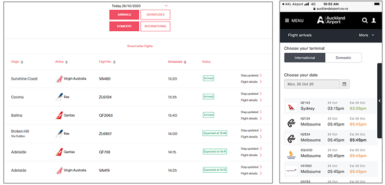 Below are two airports in APAC who use Cirium Flight Status API to display status of the arrival flights via their mobile application and website.