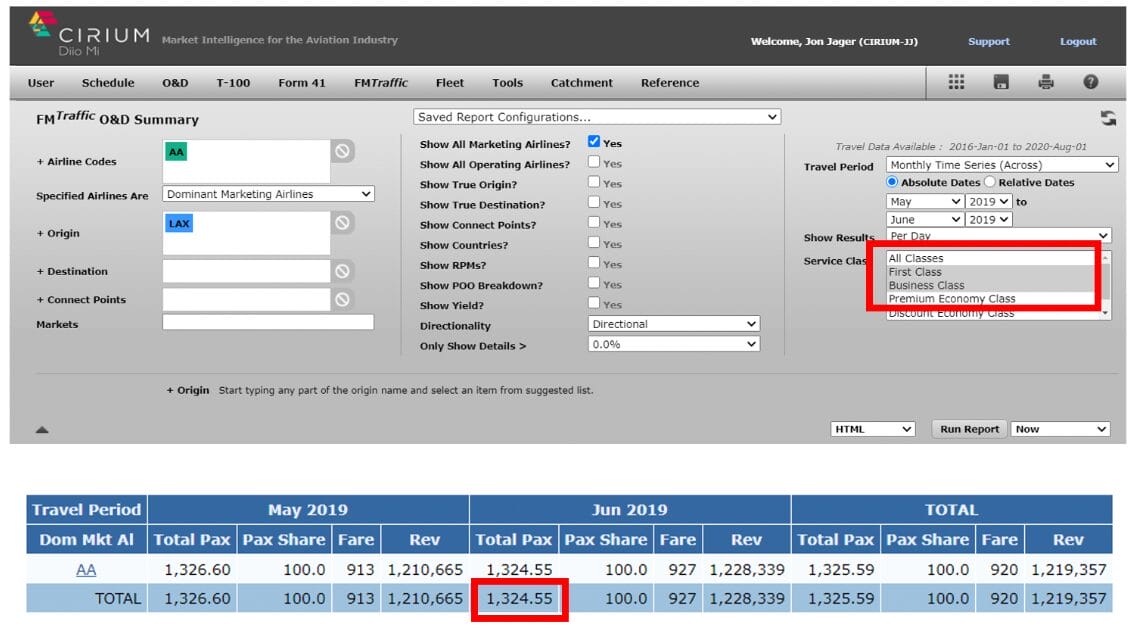 We see an airline had an average of 17,647 total departing passengers per day, in June 2019. Now we need to determine how many of that set would have access to a particular lounge by virtue of being a first or business class ticketed passenger.