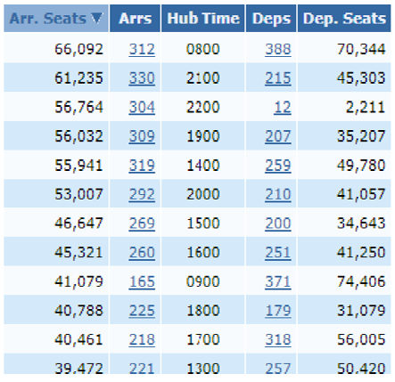 The Solution: Cirium delivers detailed information concerning the number of arrivals—and arriving seats, per hour of the day at any given airport. By utilizing the Level of Ops Report in either Cirium SRS Analyser or Cirim DiioMi, users can readily see when an airport is scheduled to be busy so as to plan their resources appropriately, including staff, quantity of rooms and other leisure and business facilities for guests. The Level of Ops Report below shows London Gatwick airport-LGW has some clear-cut “busy hours” during the day.