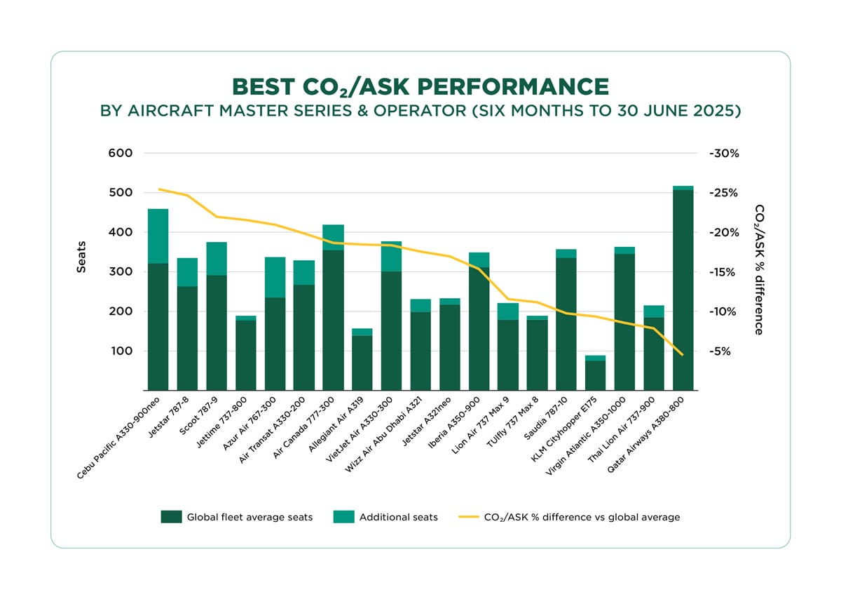 In fact, some carriers are already achieving more than 25% reductions in CO₂ emissions per available seatkilometer (ASK)—not by changing what they fly, but by rethinking how they use space.