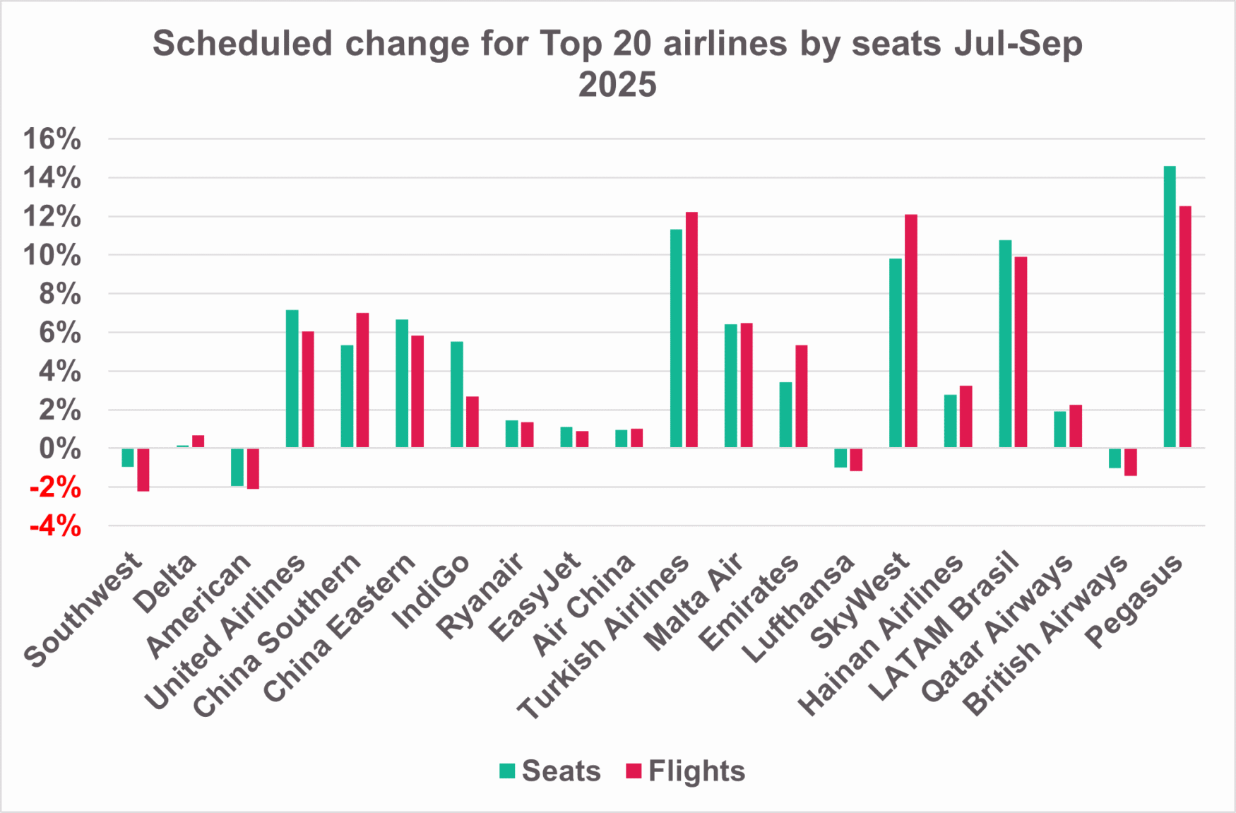 Take the first part of the problem, around the change in flights and passengers for the year ahead. A reasonable starting point is to investigate the forward-looking schedule. That is, after all, a clear statement of intent by a carrier as to the future size and shape of its schedule over the coming year.